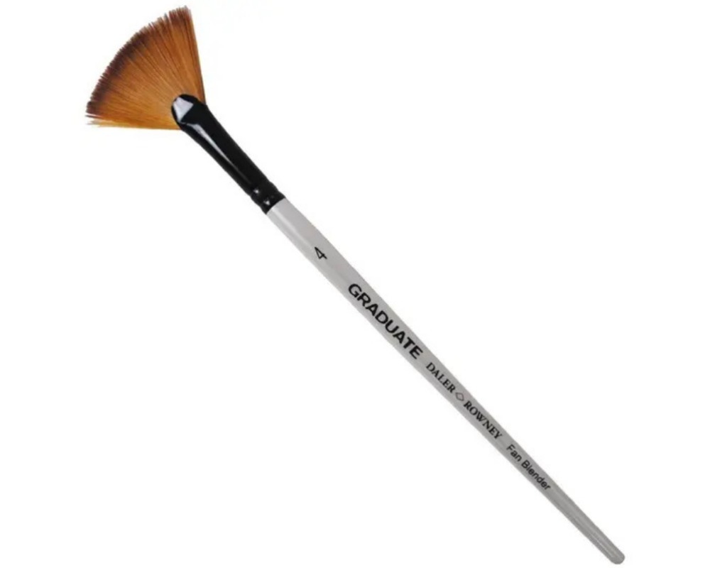 Pincel Daler Rowney N.04 Branco Graduate Fan Leque Sintético Características: Cerda: Pelo de Sintética Formato: Fan Leque Cabo: Curto (15cm) Tamanho: 4 Medidas da cerda: aproximadamente 4,5cm x 3,0cm (largura x comprimento)