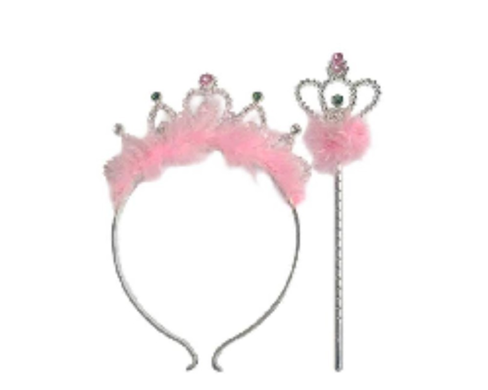 Tiara Coroa Com Varinha Charme Pluma Rosa Material: Plástico. Medidas: Tiara Coroa: 20X11 Varinha: 20x5,5cm Marca: Make+